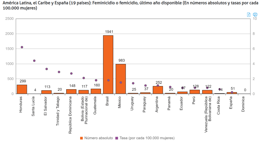 El Observatorio de la igualdad de género de América Latina y el Caribe, registra y estudia la cuantificación anual de homicidios de mujeres asesinadas por razones de género. Lamentablemente, un país como Colombia no hace parte del estudio, aun cuando la violencia hacia las mujeres es constante y casi diariamente se escuchan casos de nuevos feminicidios.